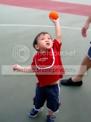 The SPH netball carnival was held early this morning. Hubby & Aidan came along to 'cheer' us on. Aidan had his own game of netball with hubby as he happily played with his li' orange ball and attempted to shoot it tru the hoops. The li' bugger was so active, tearing up & down the court and he badly wanted to go where the action was (the courts where the games were held) and many a times, hubby had to run after him to prevent him from doing so.